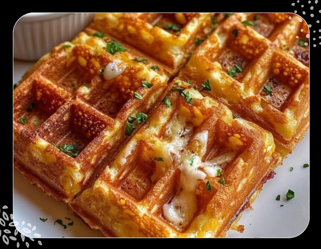 Bacon-Zwiebel-Käse-Waffeln mit Knoblauchrahm