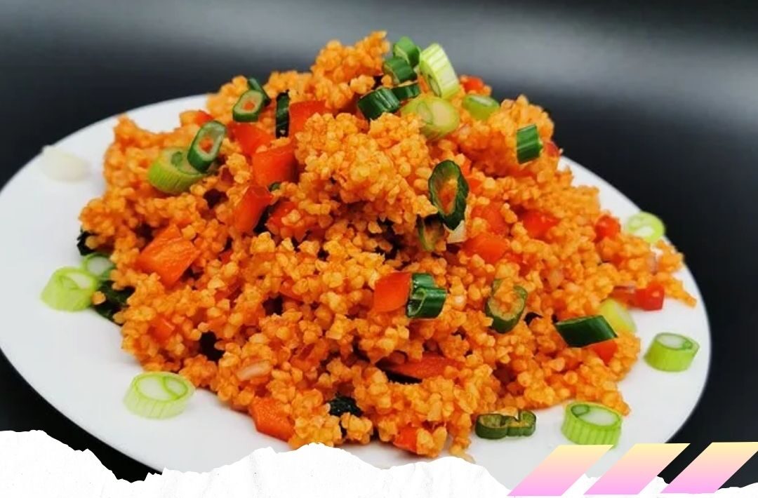 1- Weizengrütze in eine große Schüssel geben und mit heißem Wasser auffüllen, sodass die Grütze gerade bedeckt ist. Überschüssiges Wasser abgießen, damit der Kisir nicht pampig wird. Falls nötig, noch etwas Grütze hinzufügen.