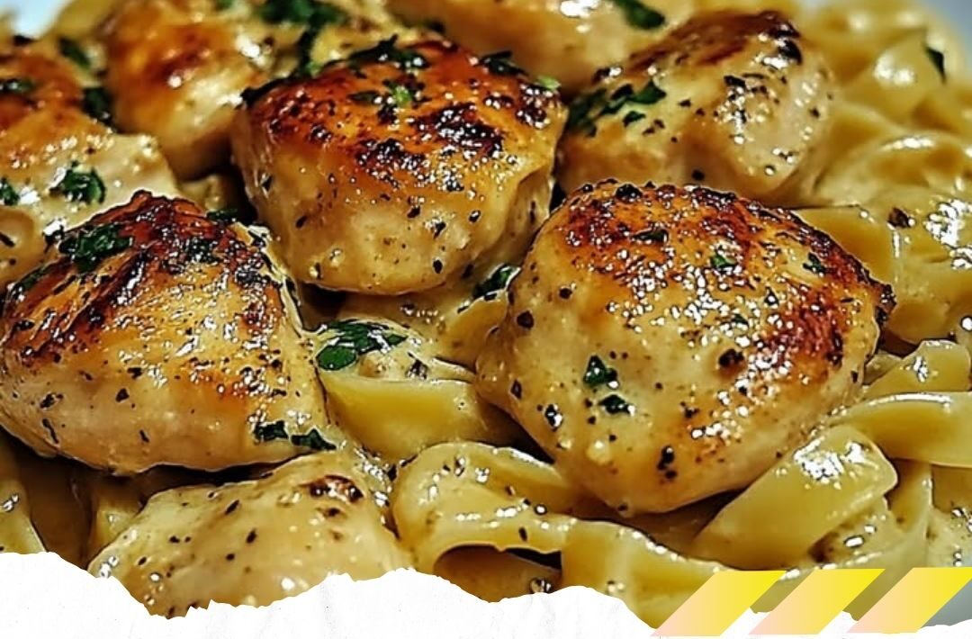 2. In einer großen Pfanne die Butter bei mittlerer Hitze schmelzen. Die gewürfelten Hähnchenstücke hinzufügen und mit Salz und Pfeffer würzen. Etwa 5–6 Minuten braten, bis das Hähnchen gebräunt ist.