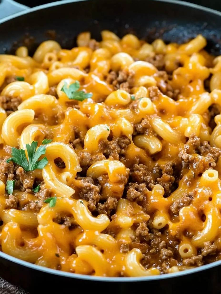 Dieses Gericht ist perfekt für stressige Wochentage, wenn der Hunger groß ist und die Zeit knapp. Die Kombination aus zartem Rinderhackfleisch, würzigem Cheddar, cremiger Sauce und Makkaroni sorgt für echtes Wohlfühlessen.
