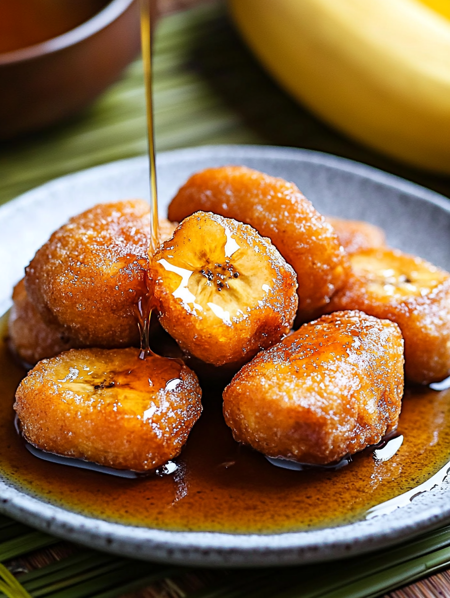 Hast du schon einmal eine warme Banane probiert, die in einem goldenen Teigmantel frittiert wurde und mit Honig beträufelt ist? Wenn nicht, dann erwartet dich eine echte Überraschung. Der Geschmack ist wie eine kleine Reise für deine Geschmacksknospen – süß, weich, knusprig und einfach unwiderstehlich.