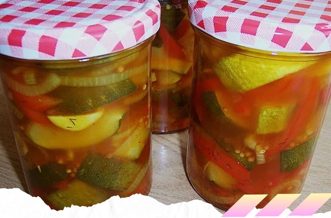 6. Die Zucchini in sterilisierte Gläser füllen und mit dem heißen Sud auffüllen.