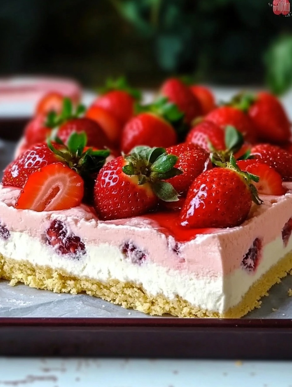 Genießen Sie diese erfrischenden Erdbeer Schmand Schnitten an warmen Sommertagen!