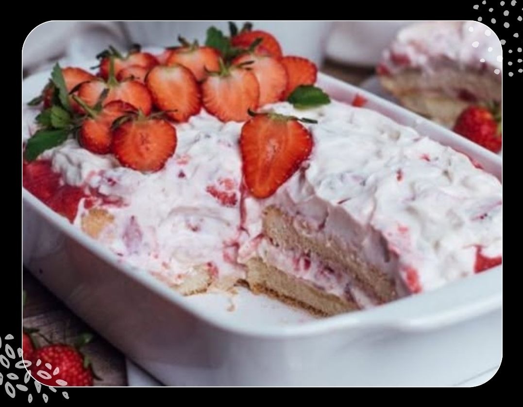 5- Eine Schicht Creme auf den Biskuits verteilen, danach eine Schicht Erdbeeren darüber geben.