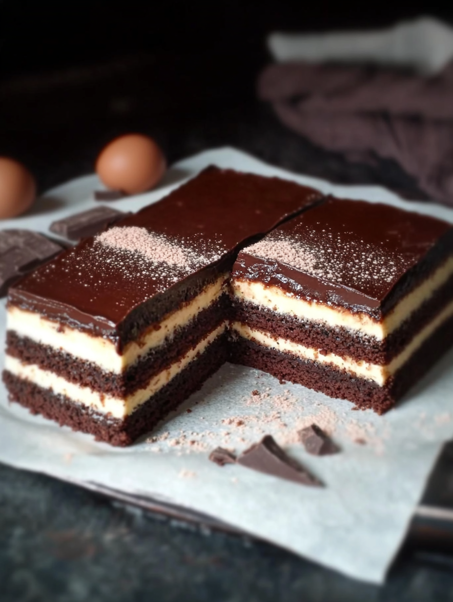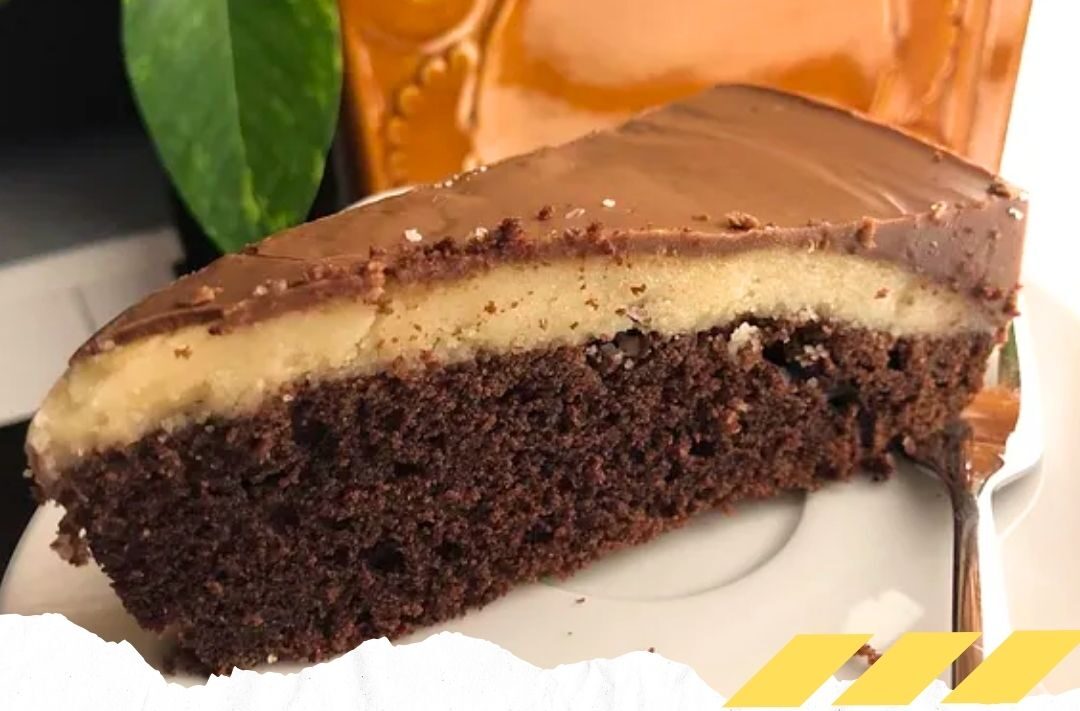 Die Masse nun auf den gebackenen, noch leicht warmen Boden mit einem heißen Messer verteilen und mit Schokoladenglasur überziehen.