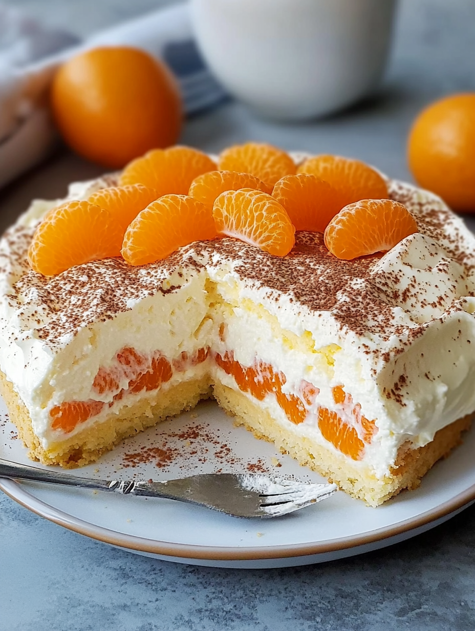 Genießen Sie diesen köstlichen Fanta-Schmand-Kuchen mit Pudding und Mandarinchen!