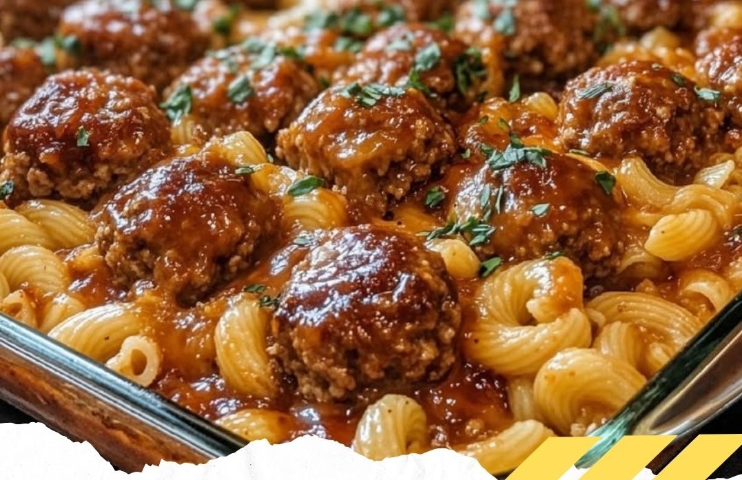 5. **Auflauf schichten:** Eine Auflaufform einfetten. Die gekochte Pasta hineinfüllen, die Fleischbällchen darauf verteilen und die Tomatensauce darüber gießen. Alles gut durchmischen.