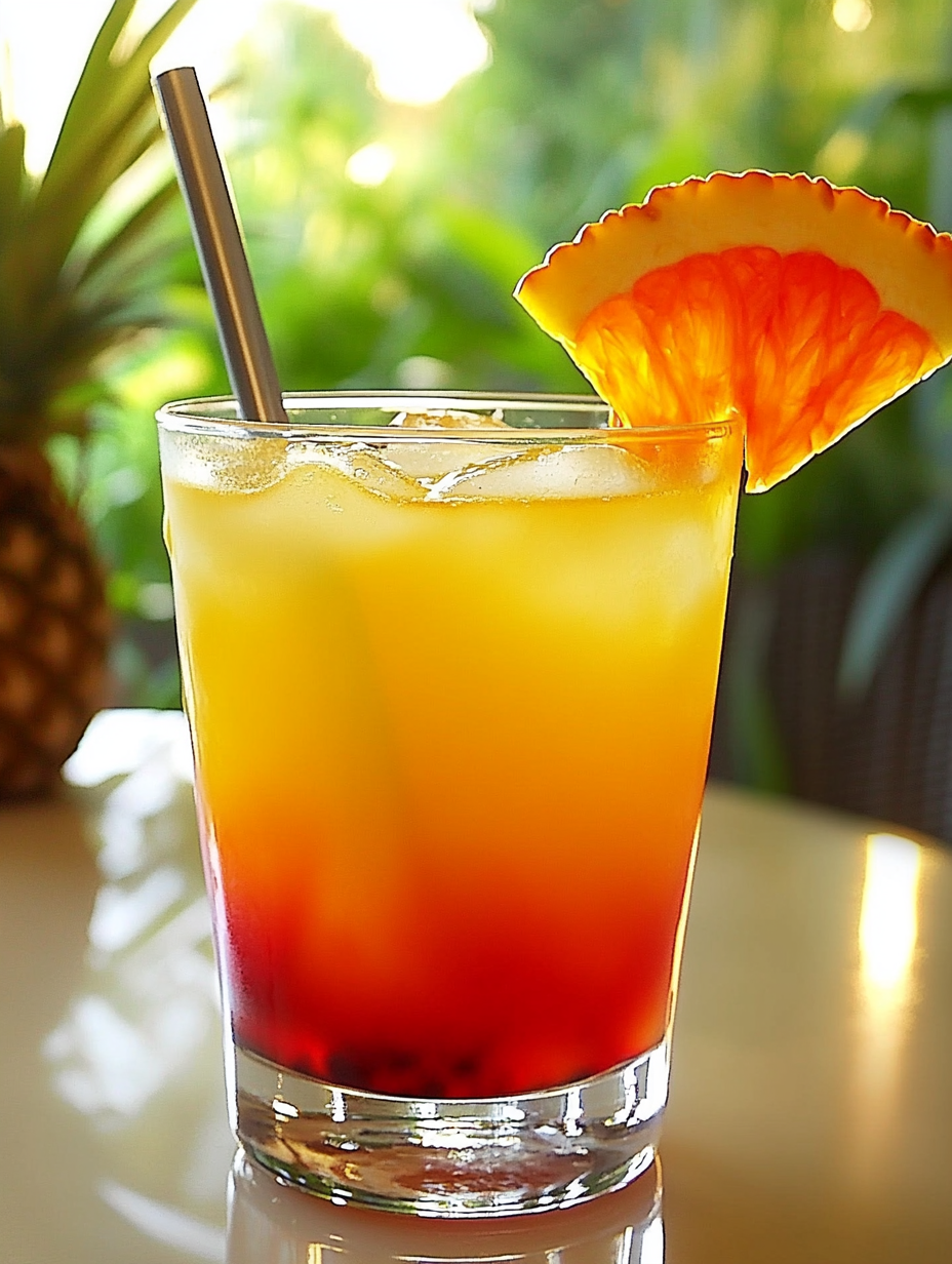 Die Fruchtsäfte in ein Longdrinkglas geben und nach Bedarf mit Mineralwasser auffüllen. Für einen schönen Farbeffekt dann etwas Grenadine ins Glas träufeln lassen – aber nicht mehr als 1 cl. Die Orangenscheibe an den Glasrand stecken und servieren.