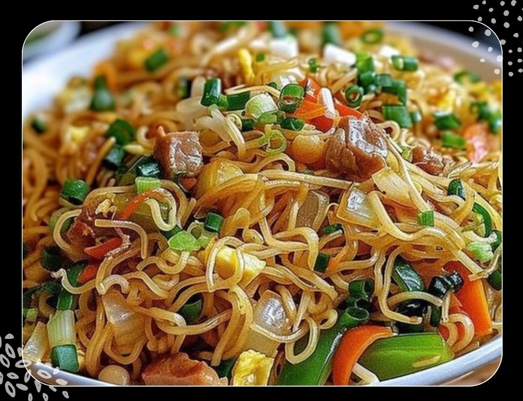 6- Hähnchenwürfel und gekochte Spaghetti hinzufügen, gut vermischen. Sojasauce und Sesamöl darüberträufeln und alles weitere 2–3 Minuten braten, bis alles heiß ist.