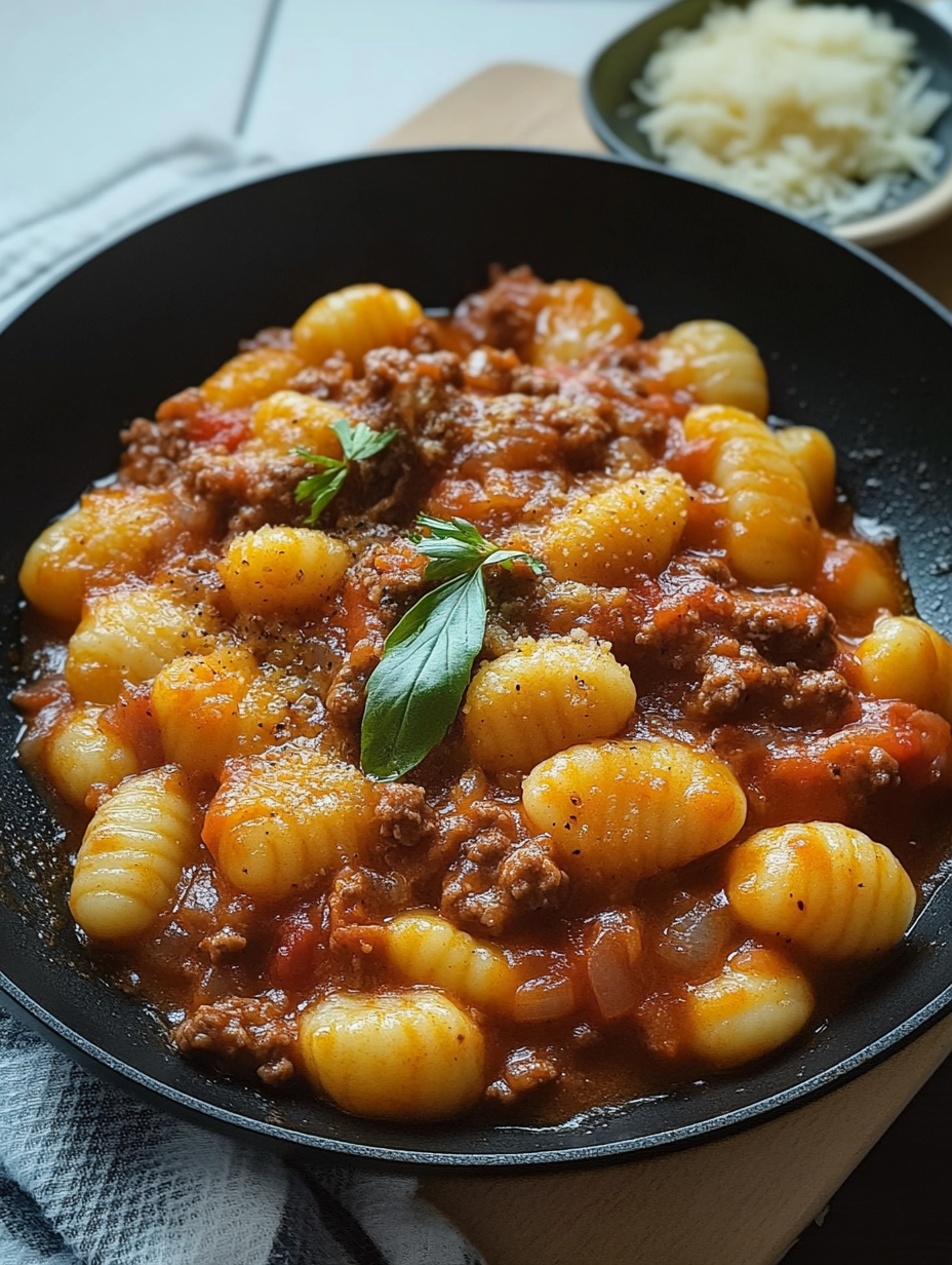 Dieses Gericht vereint alles, was wir lieben – zarte Gnocchi, würziges Hackfleisch, eine cremige Soße und eine ordentliche Portion Käse. Und das Beste? Alles entsteht in nur einer Pfanne. Weniger Abwasch, mehr Genuss. Klingt gut, oder?