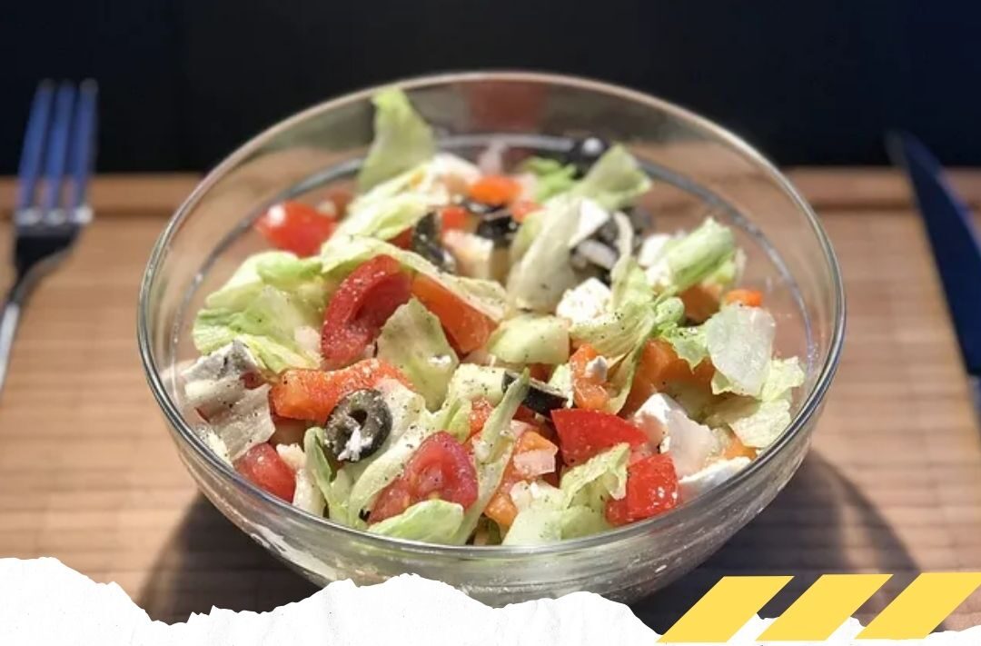 4. Feta-Käse hinzufügen: Den Feta-Käse in Würfel schneiden und über den Salat streuen.