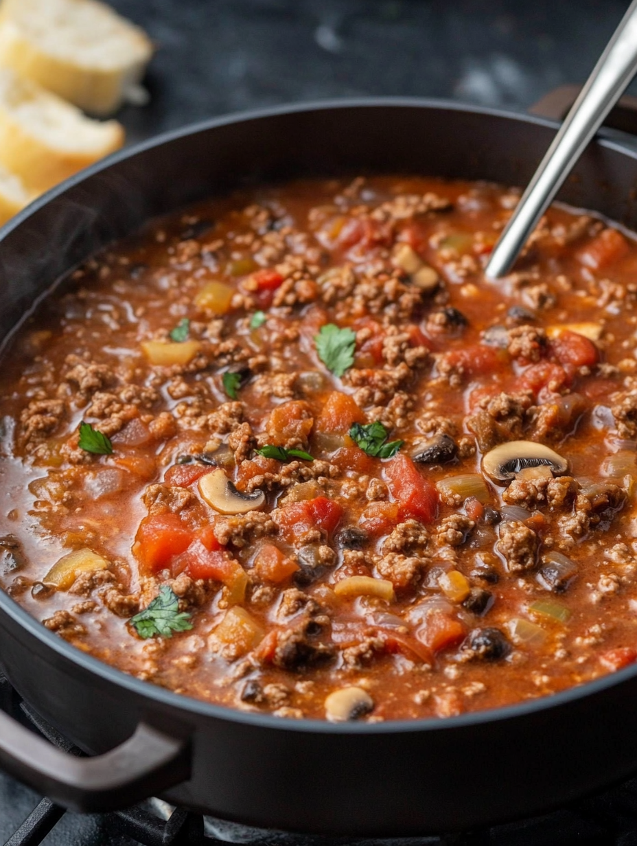 Was macht diesen Hackfleisch-Partytopf so besonders? Es ist die Kombination aus würzigem Speck, saftigem Rinderhack, aromatischen Tomaten und cremiger Sahne. Jede Zutat bringt ihren eigenen Charakter mit – zusammen ergeben sie ein harmonisches Ganzes.