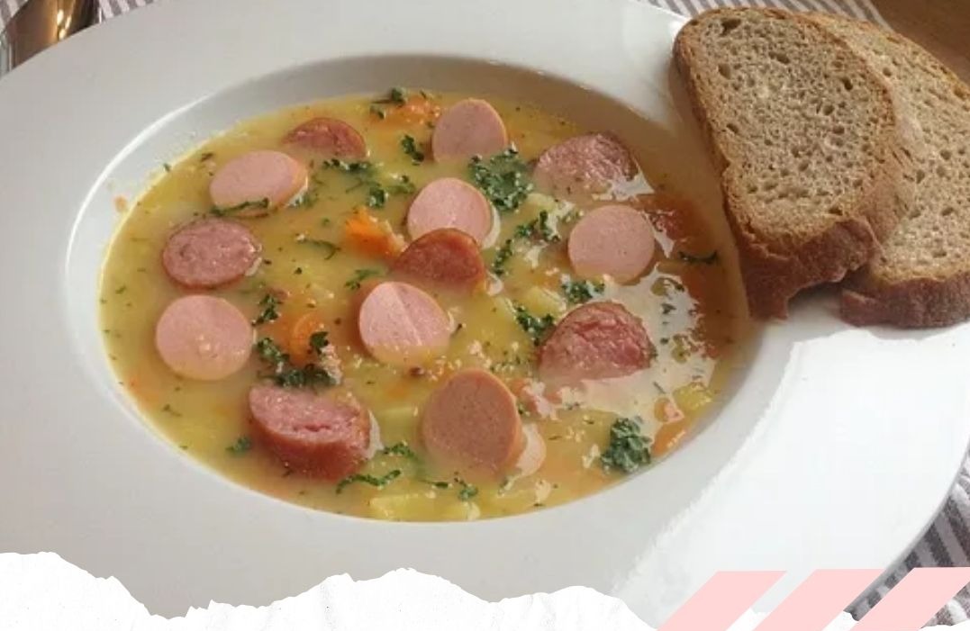 5- Die Würstchen in Scheiben schneiden und zur Suppe geben.