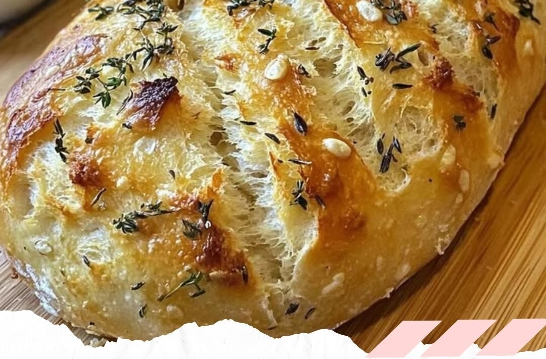 7- Den geformten Teig auf ein mit Backpapier belegtes Blech legen und 20–25 Minuten backen, bis das Brot goldbraun ist.