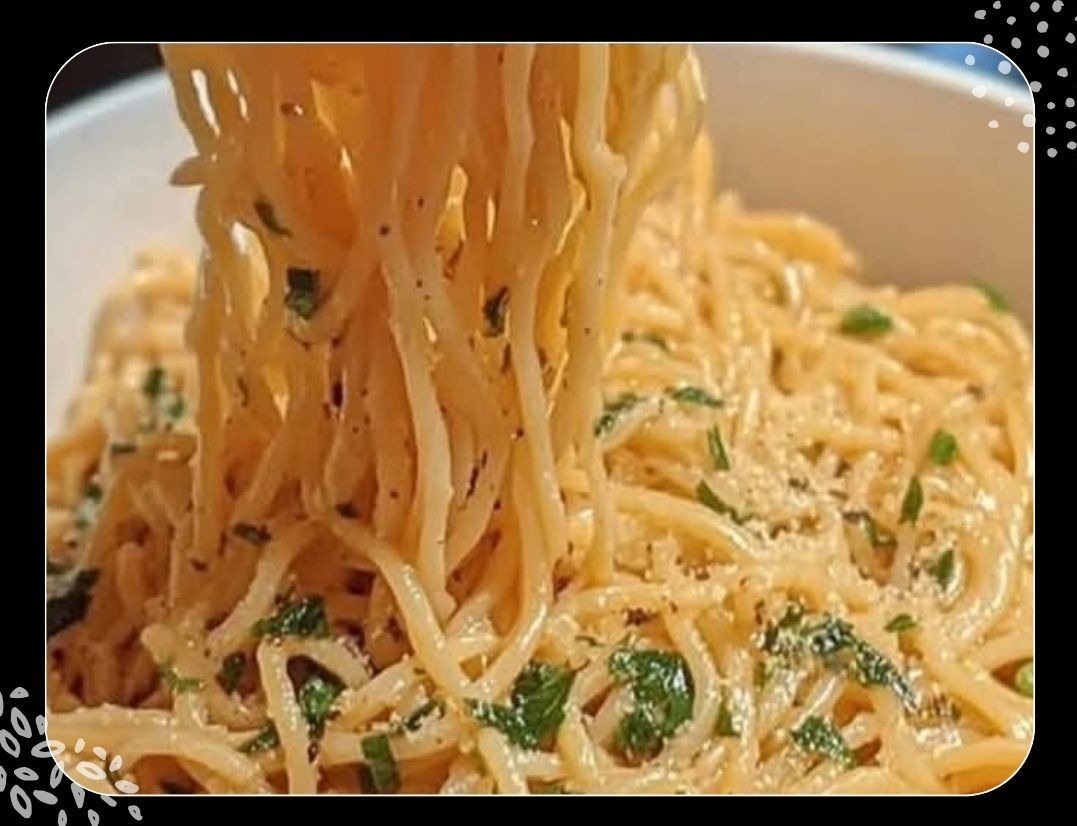 5- Die gekochten Spaghetti abgießen und direkt in die Pfanne zur Knoblauchbutter geben. Gut vermengen, sodass die Pasta gleichmäßig bedeckt ist.