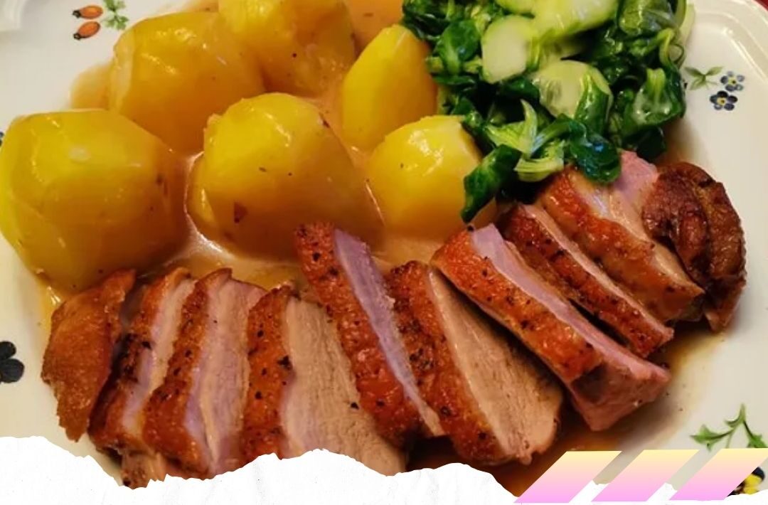 Zum Servieren die Entenbrust in schräge Scheiben schneiden.