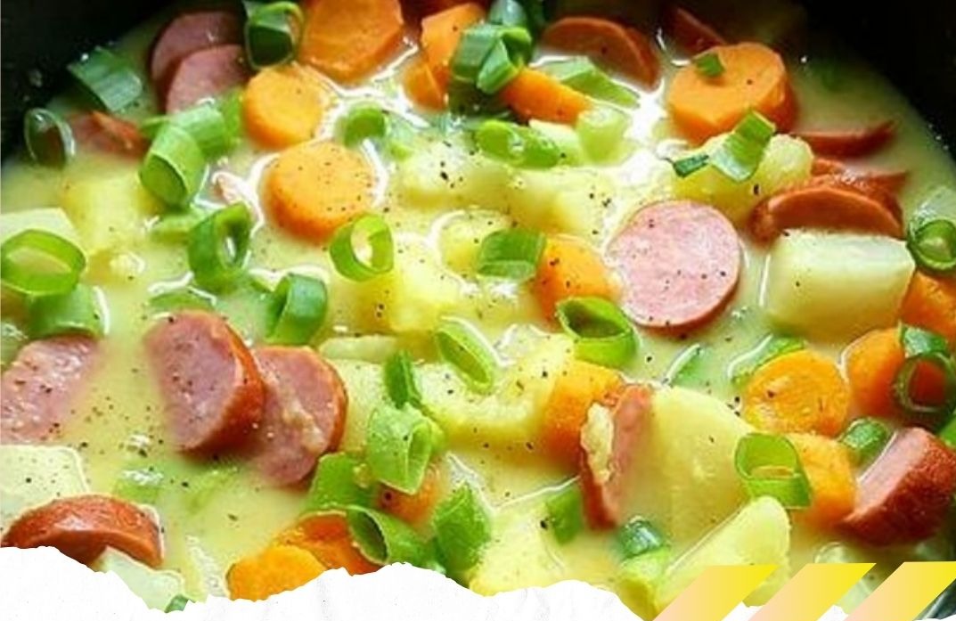 1- Kohlrabi und Kartoffeln schälen und in mundgerechte Würfel schneiden. Die Möhren schälen und in Scheiben schneiden. Zwiebel und Knoblauch schälen und klein würfeln, die Wurst in Scheiben schneiden.