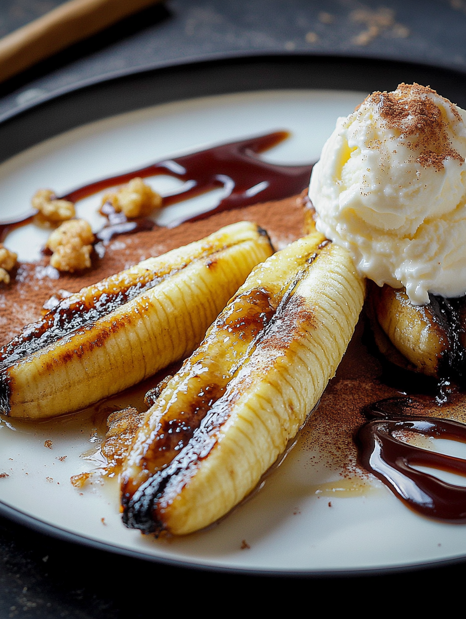 Dieses Dessert ist wie eine kleine Umarmung auf dem Teller. Die warme, karamellisierte Banane trifft auf kühle Vanilleeiscreme, während Honig, Zimt und Schokolade alles harmonisch verbinden. Es ist einfach zuzubereiten, braucht keine exotischen Zutaten und schmeckt dennoch wie aus einem Restaurant.