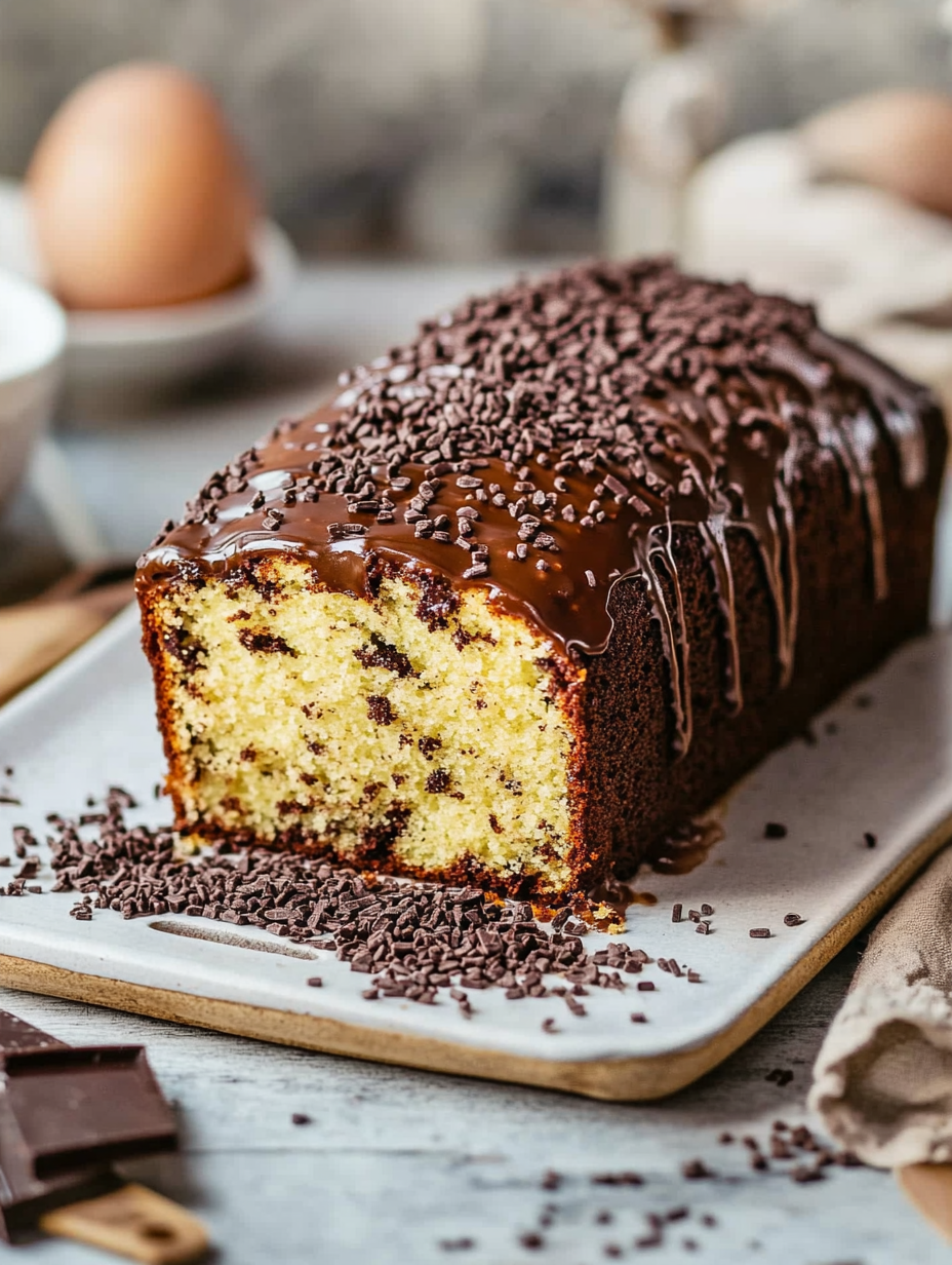 Ameisenkuchen ist ein klassischer Rührkuchen mit Schokostreuseln. Beim Anschneiden zeigen sich die dunklen Streusel im hellen Teig – wie kleine Ameisen, die sich ihren Weg durch den Kuchen gebahnt haben.
