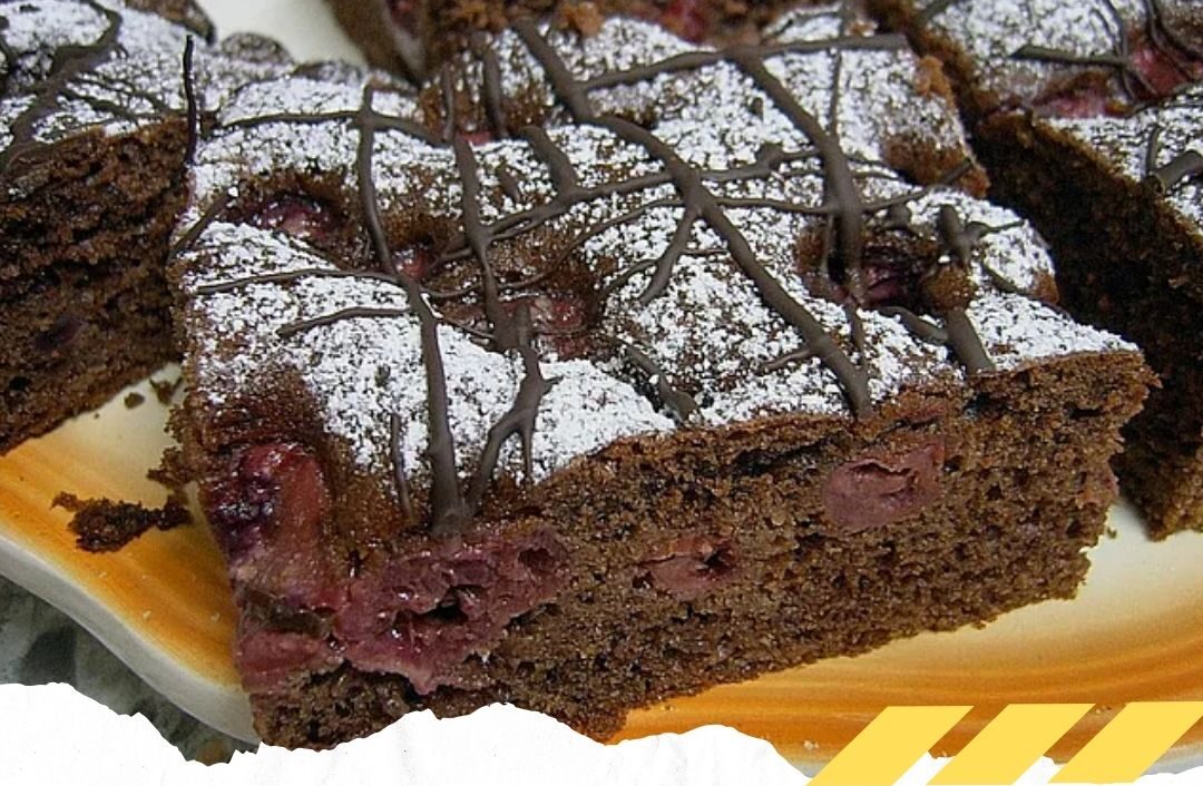 Ankündigung des Rezepts für Kakao-Kirschkuchen