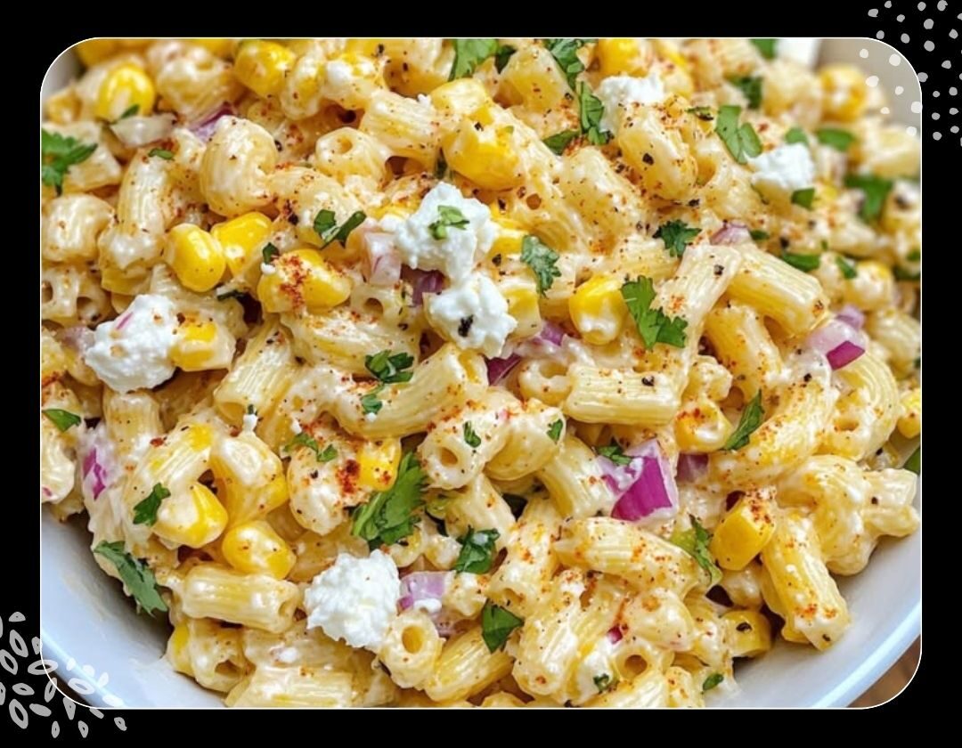5- Gekochte Makkaroni, Mais, Zwiebel und Koriander hinzufügen und alles vorsichtig vermengen.