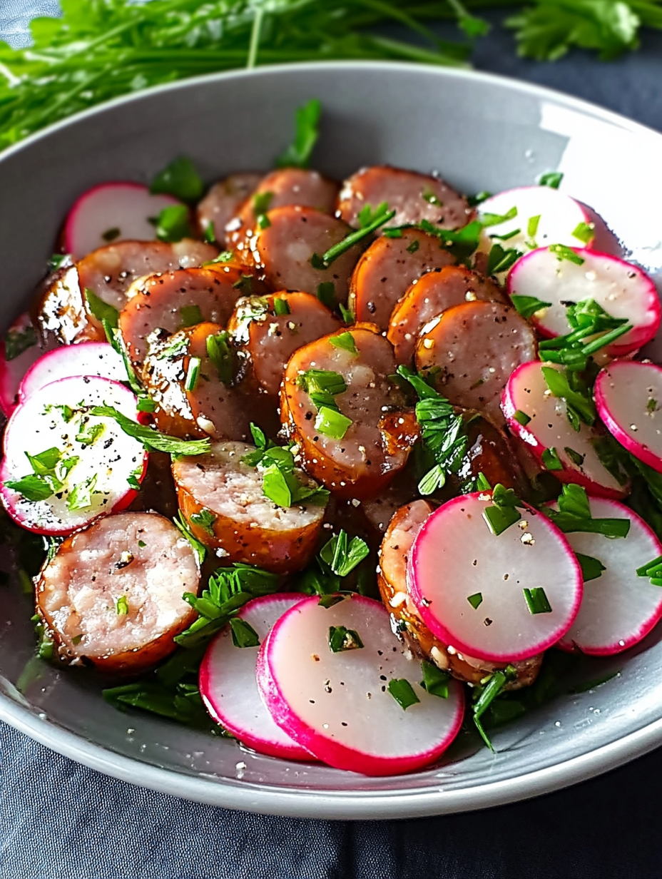 6. Der Salat kann als Beilage zu Schwarzbrot, als Vorspeise oder als leichtes Sommeressen mit Bratkartoffeln serviert werden.