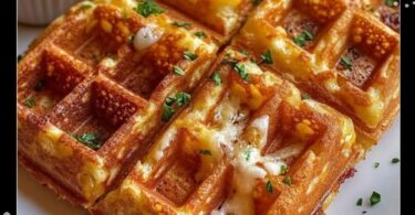 Bacon-Zwiebel-Käse-Waffeln mit Knoblauchrahm