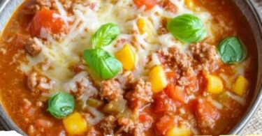 Schnelle Pizzasuppe mit Hackfleisch