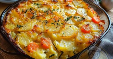 kartoffelauflauf mit zucchini, karotten und zwiebeln