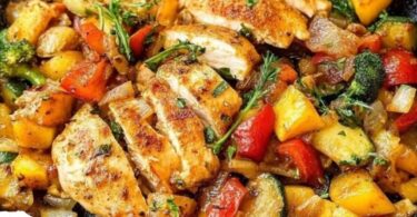 Hähnchen mit Gemüse aus der Pfanne