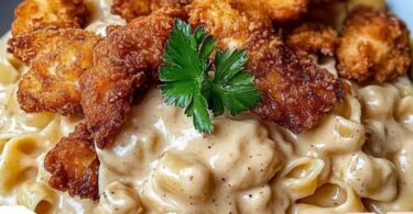 Zarte Hähnchenstreifen mit cremigen Nudeln in sahniger Sauce