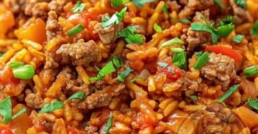 Herzhaftes Familiengericht mit Hackfleisch, Paprika und Reis