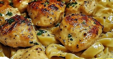 Buttriges Knoblauch-Hähnchen über Fettuccine