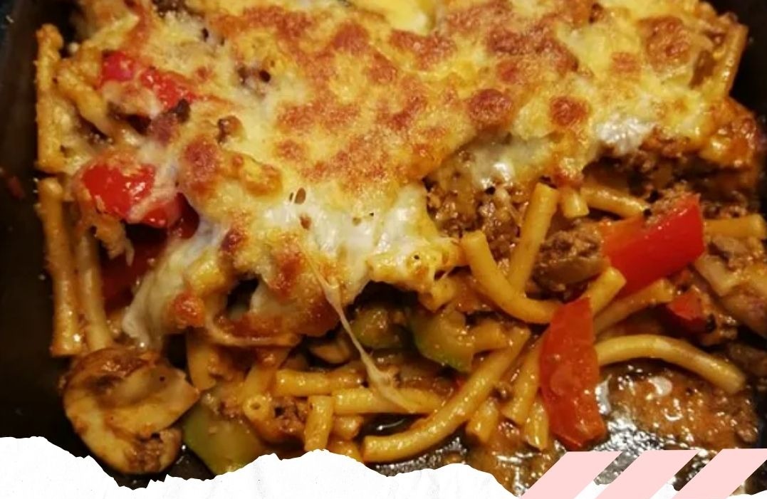 Die Nudeln mit der Sauce vermischen, in eine große Auflaufform füllen und mit Käse bestreuen.