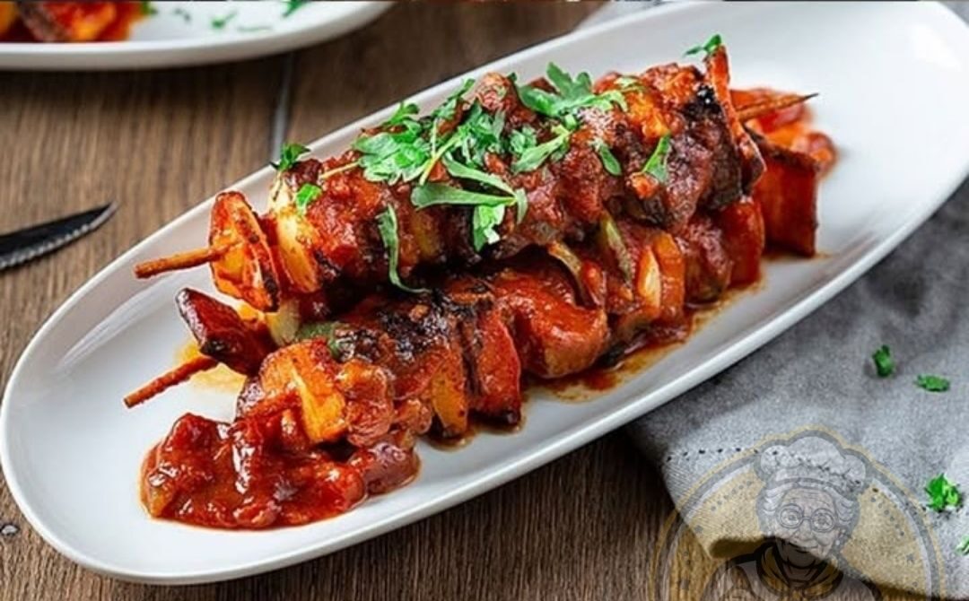 8- Die fertigen Spieße in die Soße legen oder separat mit der Soße servieren.