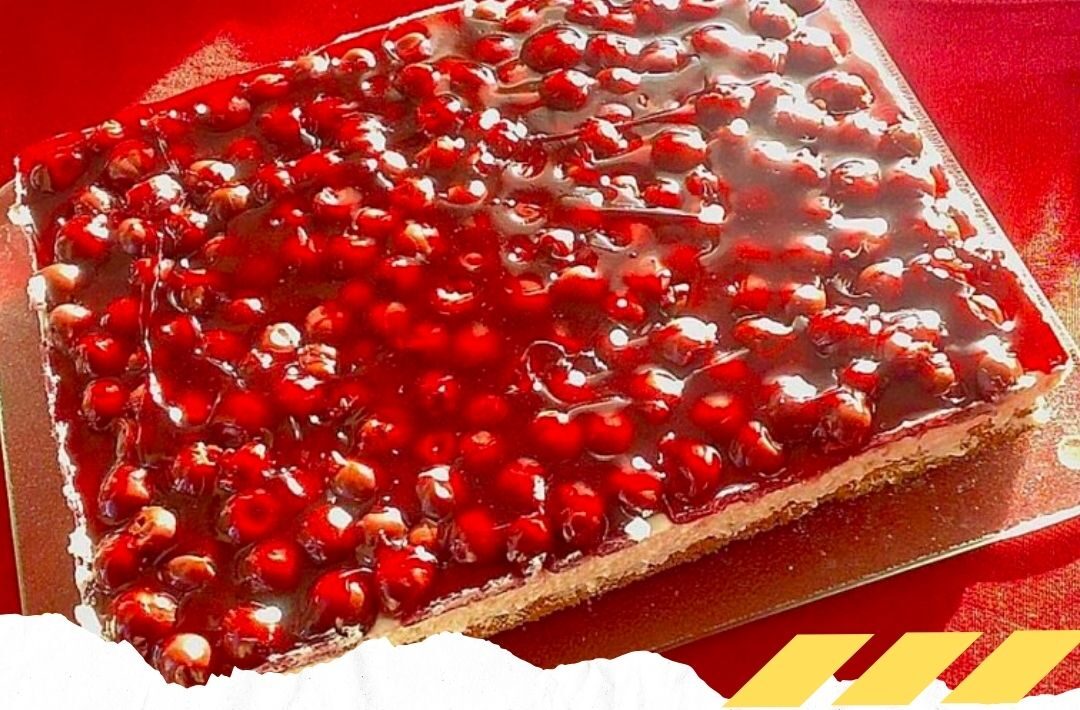 Nun Aus dem aufgefangenen Kirschsaft einen Tortenguss nach Packungsanweisung zubereiten und leicht abkühlen lassen. Auf den Kuchen geben.