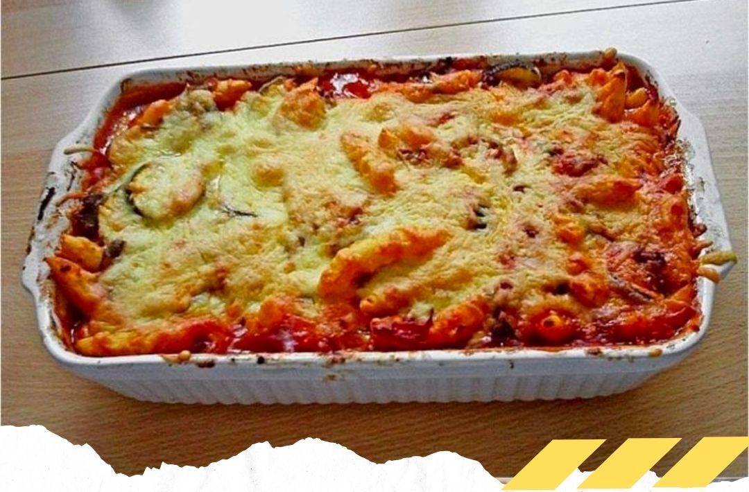 Schupfnudeln in eine Auflaufform geben und die Sauce darüber gießen.