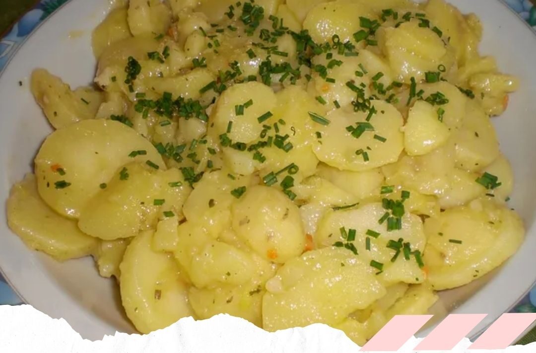 5. Den Salat etwa 30 Minuten ziehen lassen, damit die Kartoffeln den Geschmack aufnehmen.