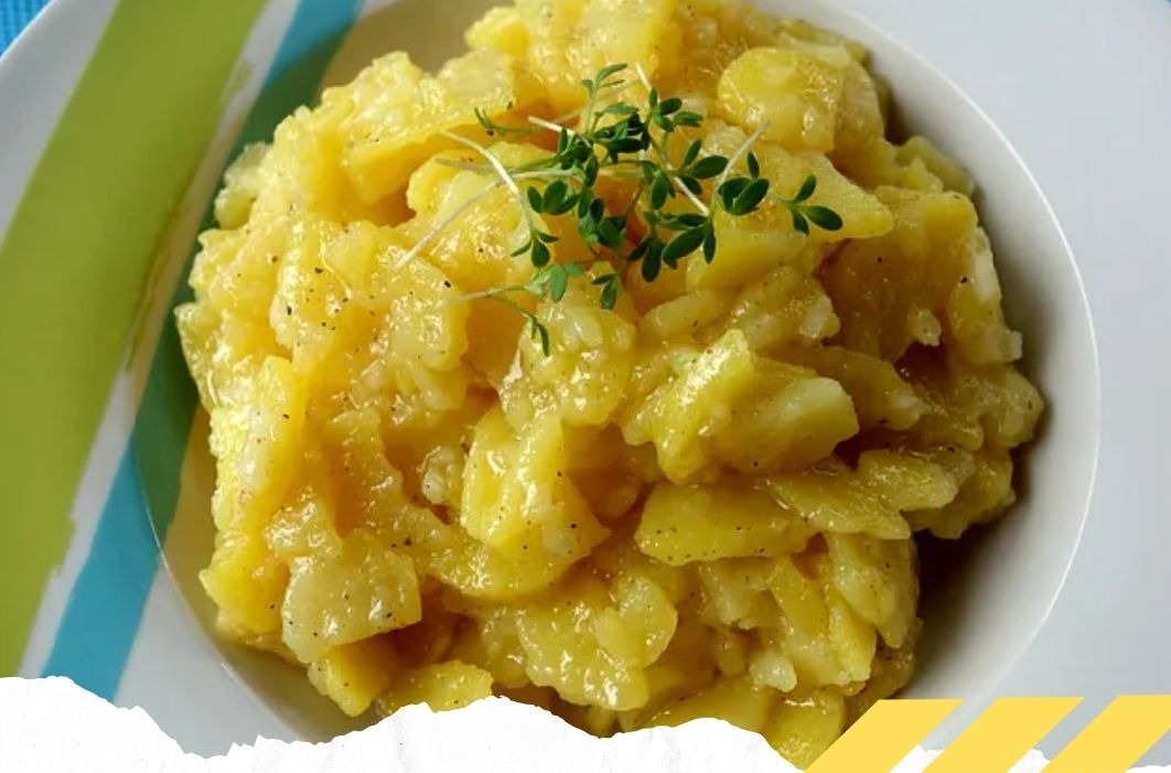 3- Heiße Brühe hinzugeben, mischen, dann Öl, Senf und Essig hinzufügen.