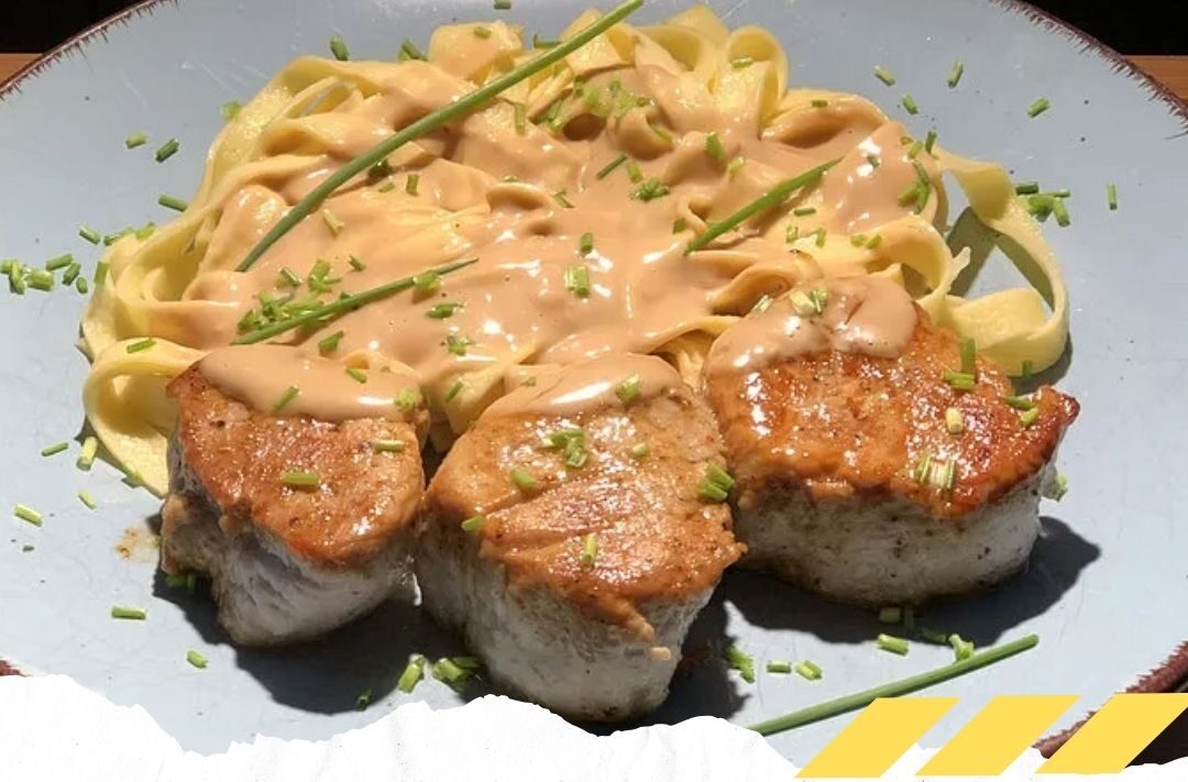 Die Medaillons von beiden Seiten jeweils 4 Minuten anbraten. Im vorgeheizten Backofen bei 150°C warm stellen. Den Backofen ausschalten.