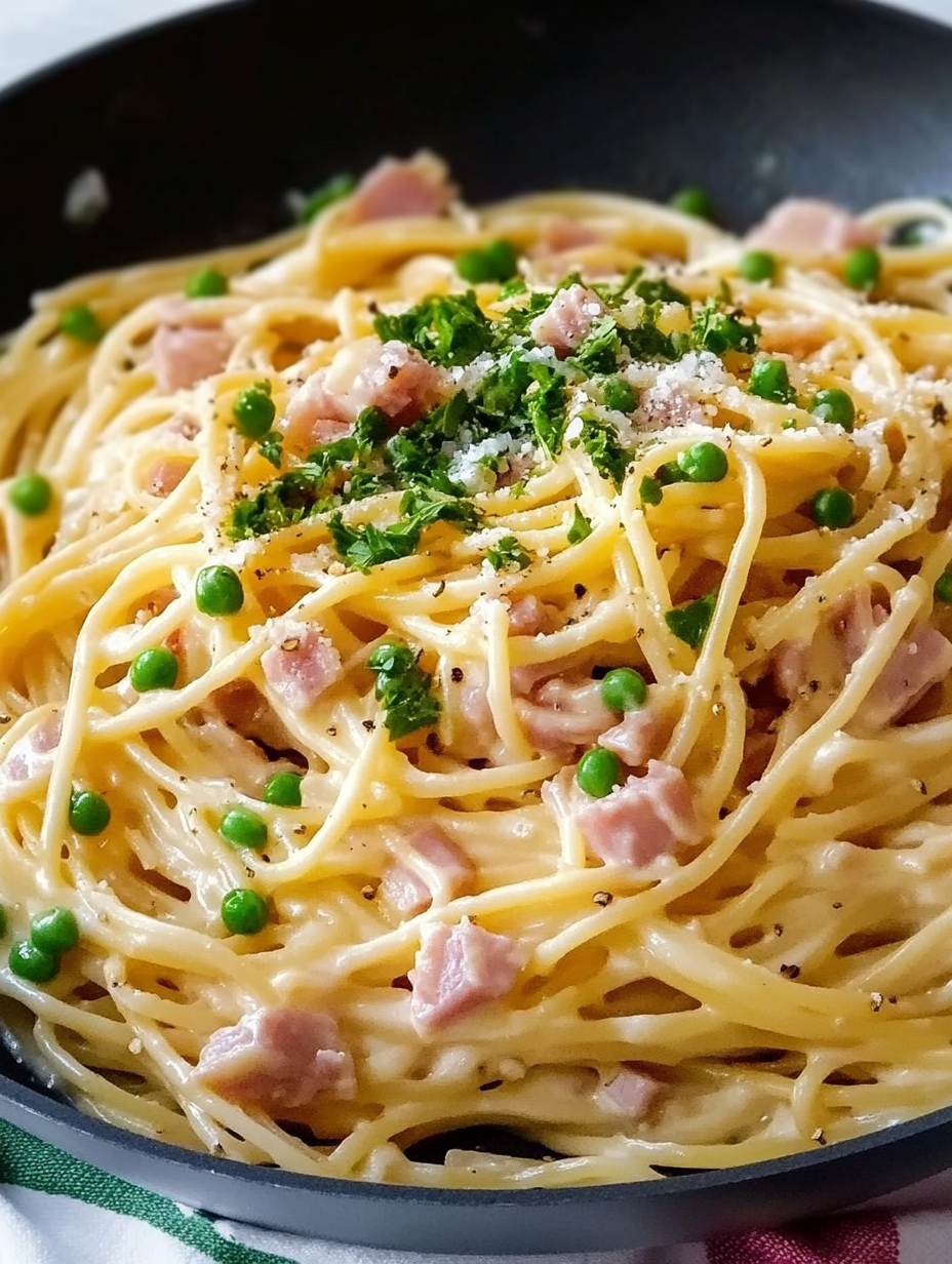 Jede dieser Zutaten hat ihren Platz. Der Schinken sorgt für Würze, die Sahne für Cremigkeit, und der Parmesan bringt den letzten Schliff.