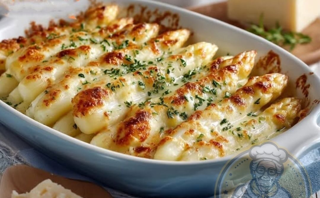 5- Bei 200 °C ca. 25–30 Minuten im Ofen garen, je nach Dicke der Spargelstangen.
