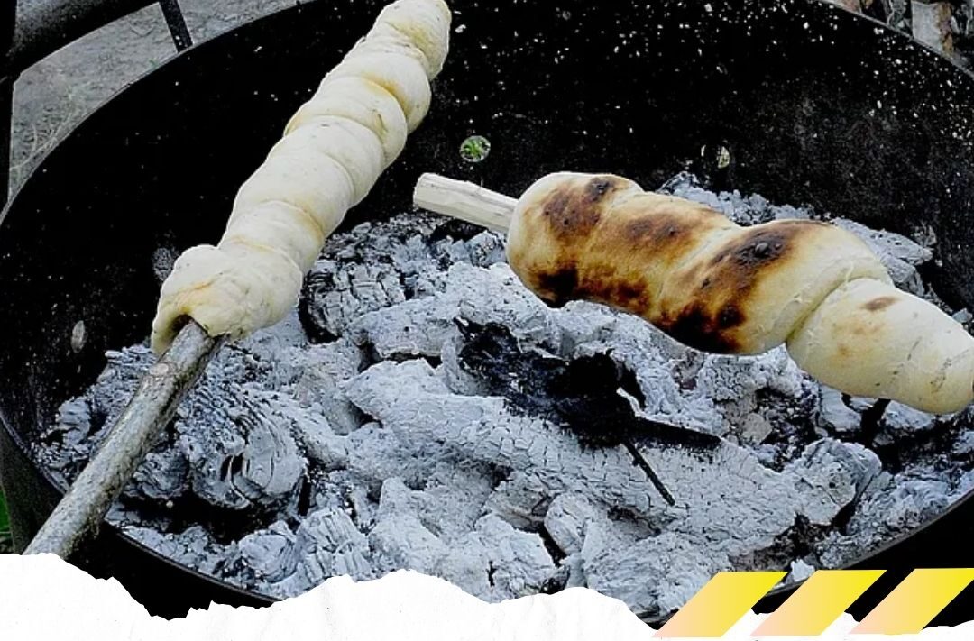 Den Teig in lange, dünne Röllchen formen und um lange Stecken wickeln. Diese ins Feuer oder in die Nähe der Glut halten, bis das Stockbrot knusprig braun ist. Direkt vom Stock genießen!