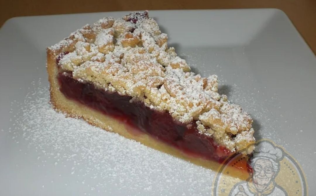2/3 der Streusel in eine 24er Springform geben und festdrücken, dabei einen kleinen Rand hochziehen. Die Kirschfüllung auf dem Boden verteilen und die restlichen Streusel gleichmäßig darauf verteilen. Mit Mandelblättchen bestreuen.
