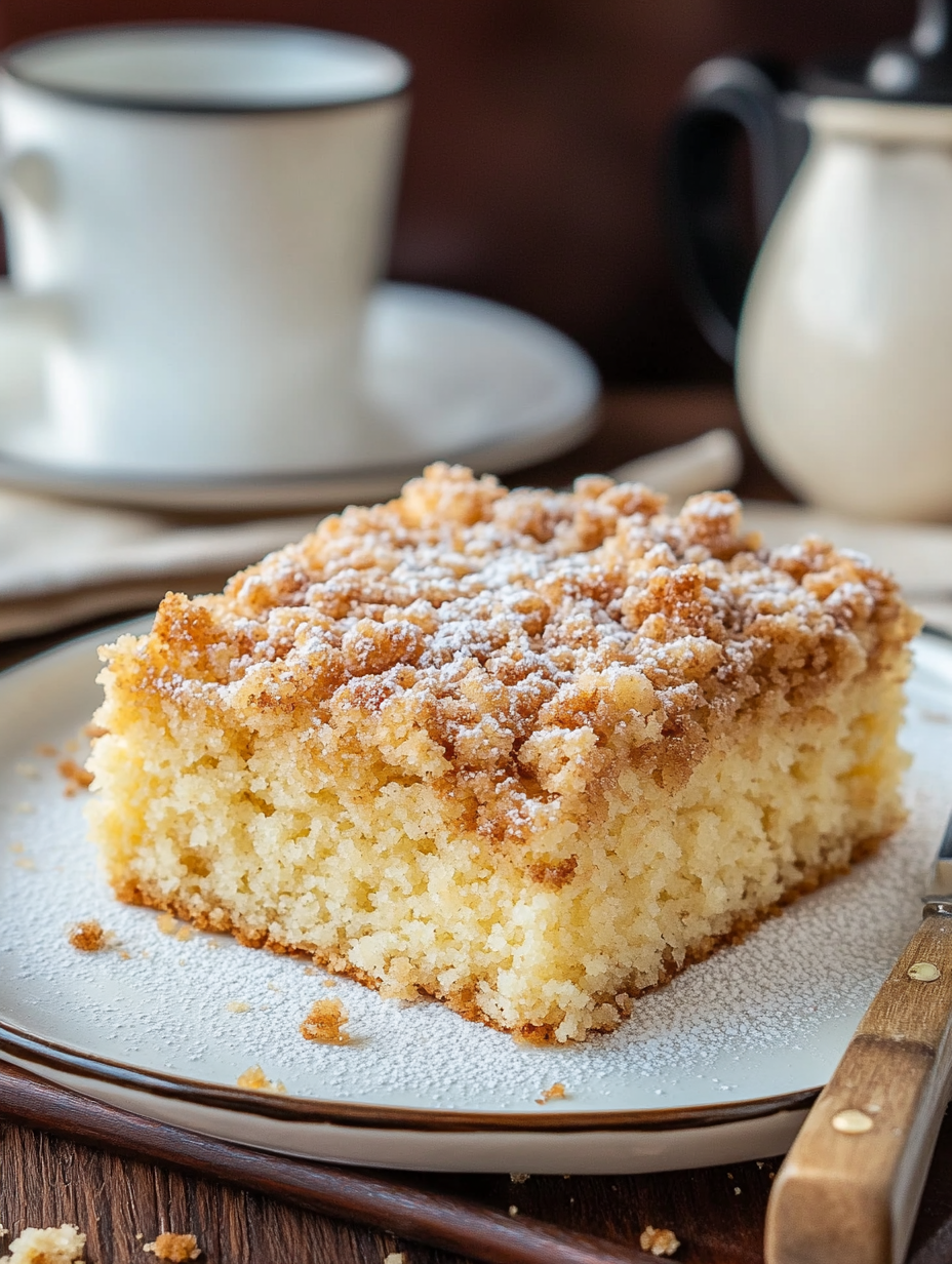 Auf den heißen Kuchen, sofort wenn er aus dem Rohr kommt, einen Becher süße Sahne gießen und mit Puderzucker bestreuen!