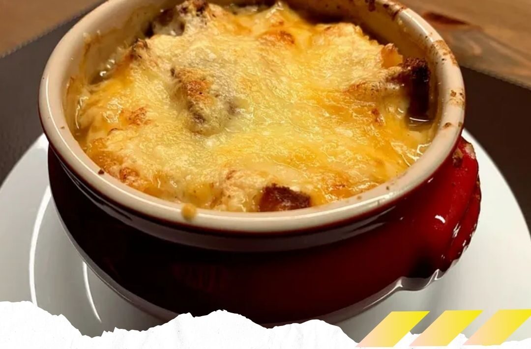 Baguettescheiben toasten und mit dem geriebenen Käse belegen. Im Ofen unter dem Grill goldbraun gratinieren. Die Suppe in Schalen füllen, die Käseschnitten darauflegen und servieren.